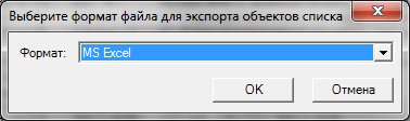 Кнопка панели инструментов открывает диалог выбора формата файла: