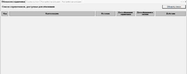 После того, как пользователь произведет все описанные выше действия, откроется окно <Обновление справочников>, как показано на рисунке ниже. Для каждого разреза планирования нужен свой справочник.