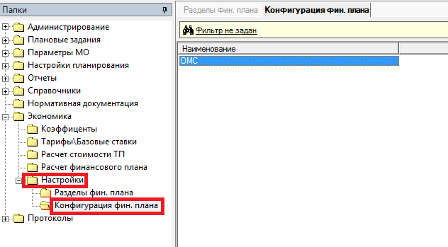Следующим этапом настройки <Расчета финансового плана> является настройка <Конфигурации финансового плана>. Данный раздел находится в папке <Настройки>.