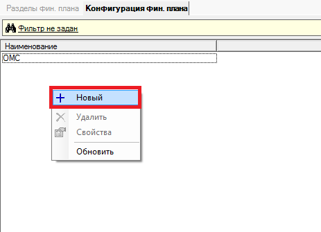 Пользователю системы следуют указать наименование, так же необходимо добавить Раздел финансового плана.