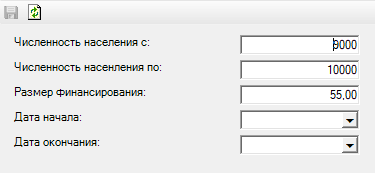 Далее переходим к сущности «Fap_funding» (объем финансирования ФАП). Добавляем объем финансирования. Для этого указываем численность населения, а также размер финансирования, можно указать дату начала и окончания как показано на рисунке ниже.