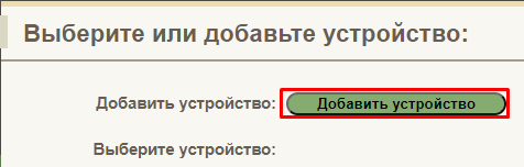 На странице "Добавление устройства" из выпадающего списка выбрать: