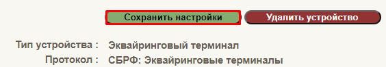 • Тип устройства (выбираем из списка "Эквайринговый терминал")