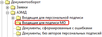 4. После подписи мед. документации Врачом, сотрудник, ответственный за отправку документов в АЭМД, заходит в папку «Входящие для подписи МО» и выбирает документ для подписи.