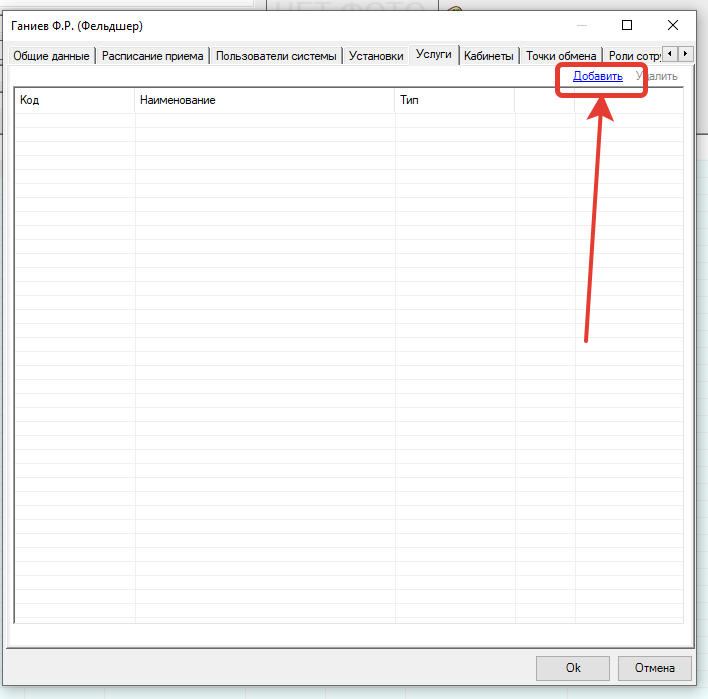 Добавить услуги на вкладке с информацией о сотруднике, нажать на данные сотрудника мышкой
