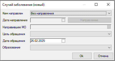 Заполнить необходимые поля на форме «Случай заболевания (новый)» и нажать «ОК».
