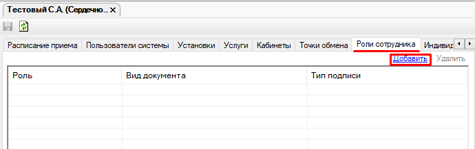 Выбираем «Роли сотрудника». Нажать кнопку «Добавить».