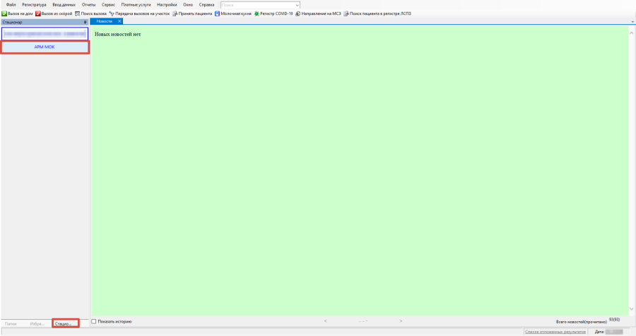 После направления врачом поликлиники пациента на реабилитацию, решение о прохождении данным пациентом реабилитации принимает Мультидисциплинарная отборочная комиссия. Для дальнейшей работы необходимо перейти в АМР МОК, который находится на вкладке «Стационар» слева.